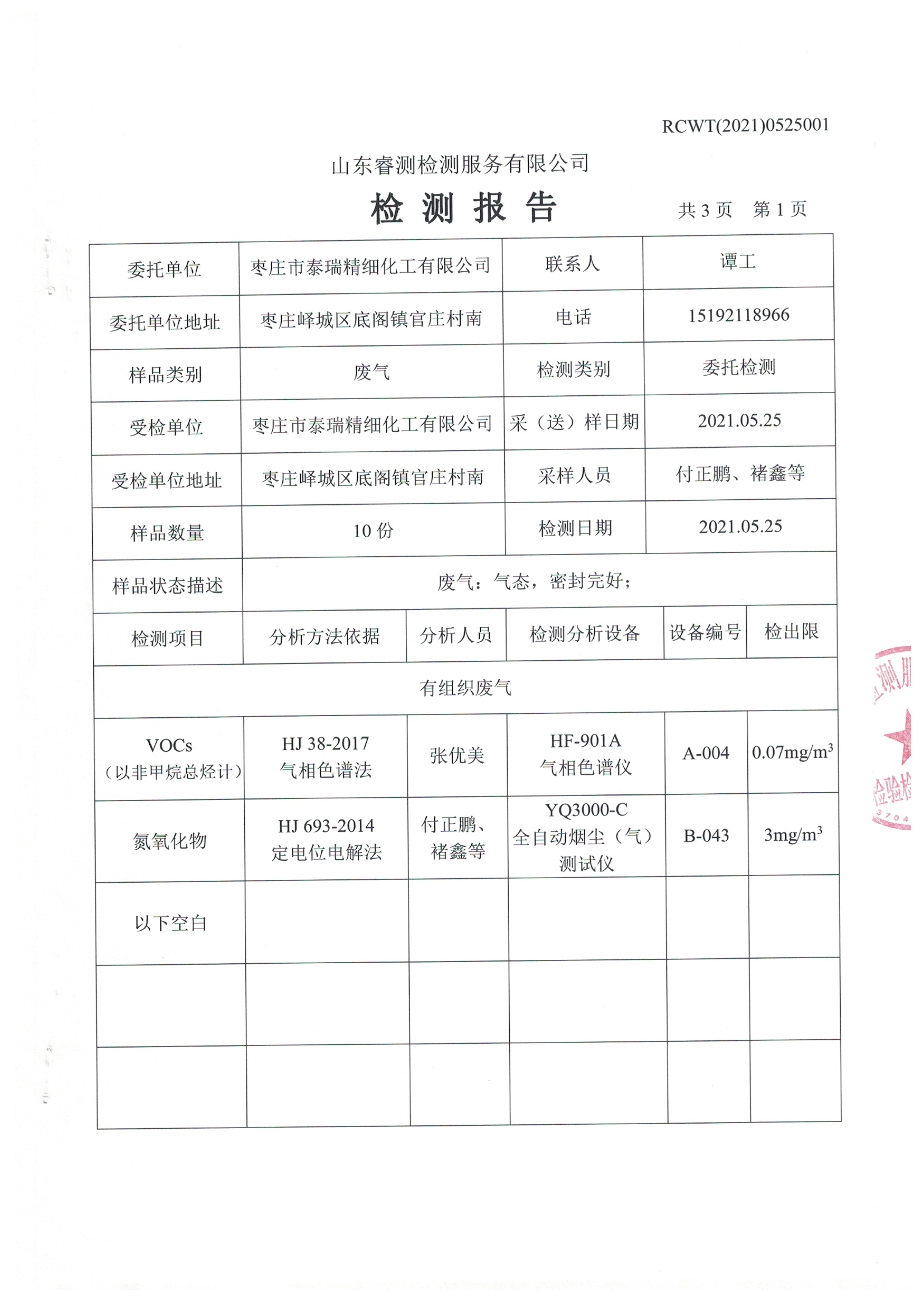 2021年4月份及季度自行檢測(cè)報(bào)告
