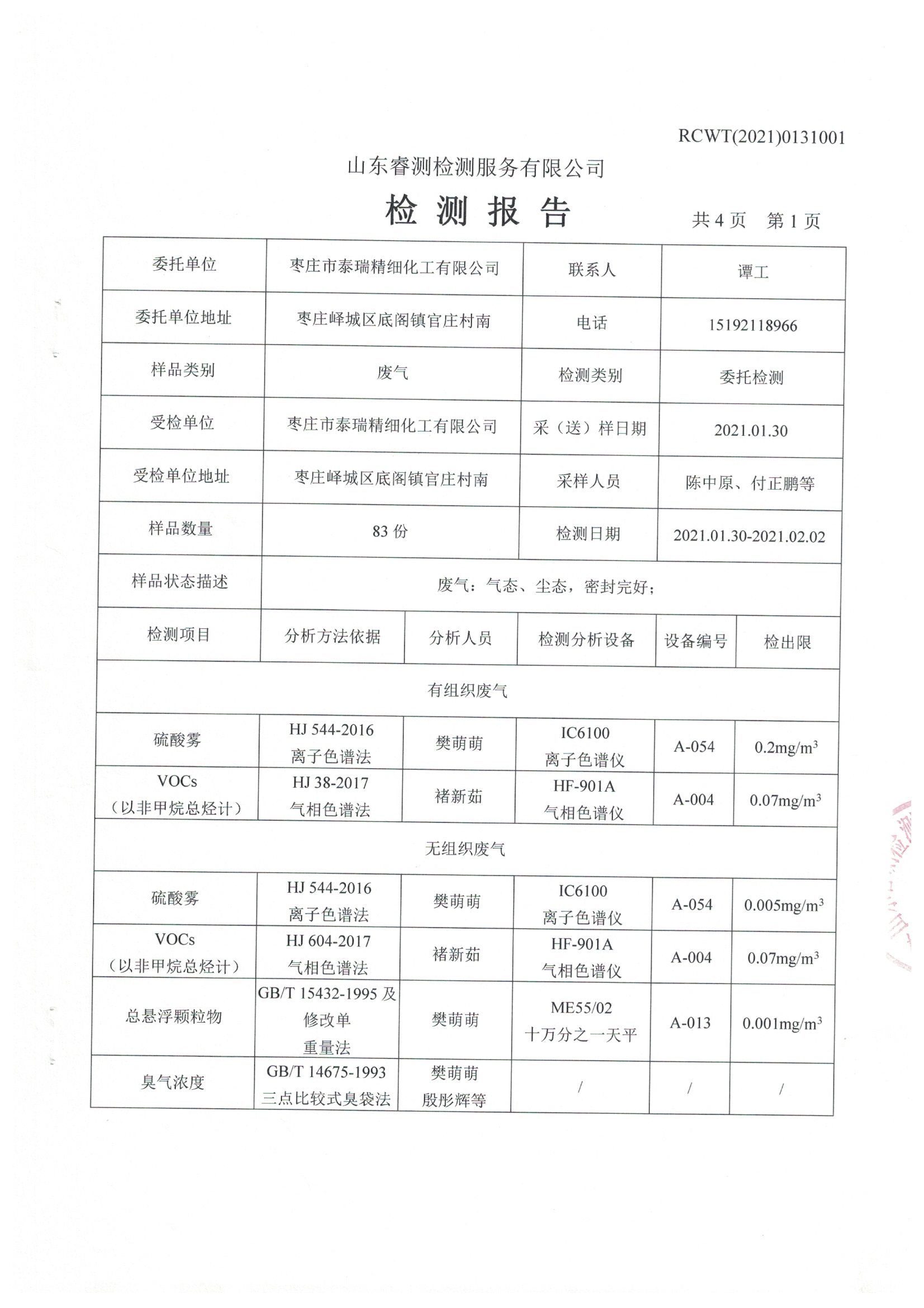 2021年第一季度自行檢測(cè)報(bào)告