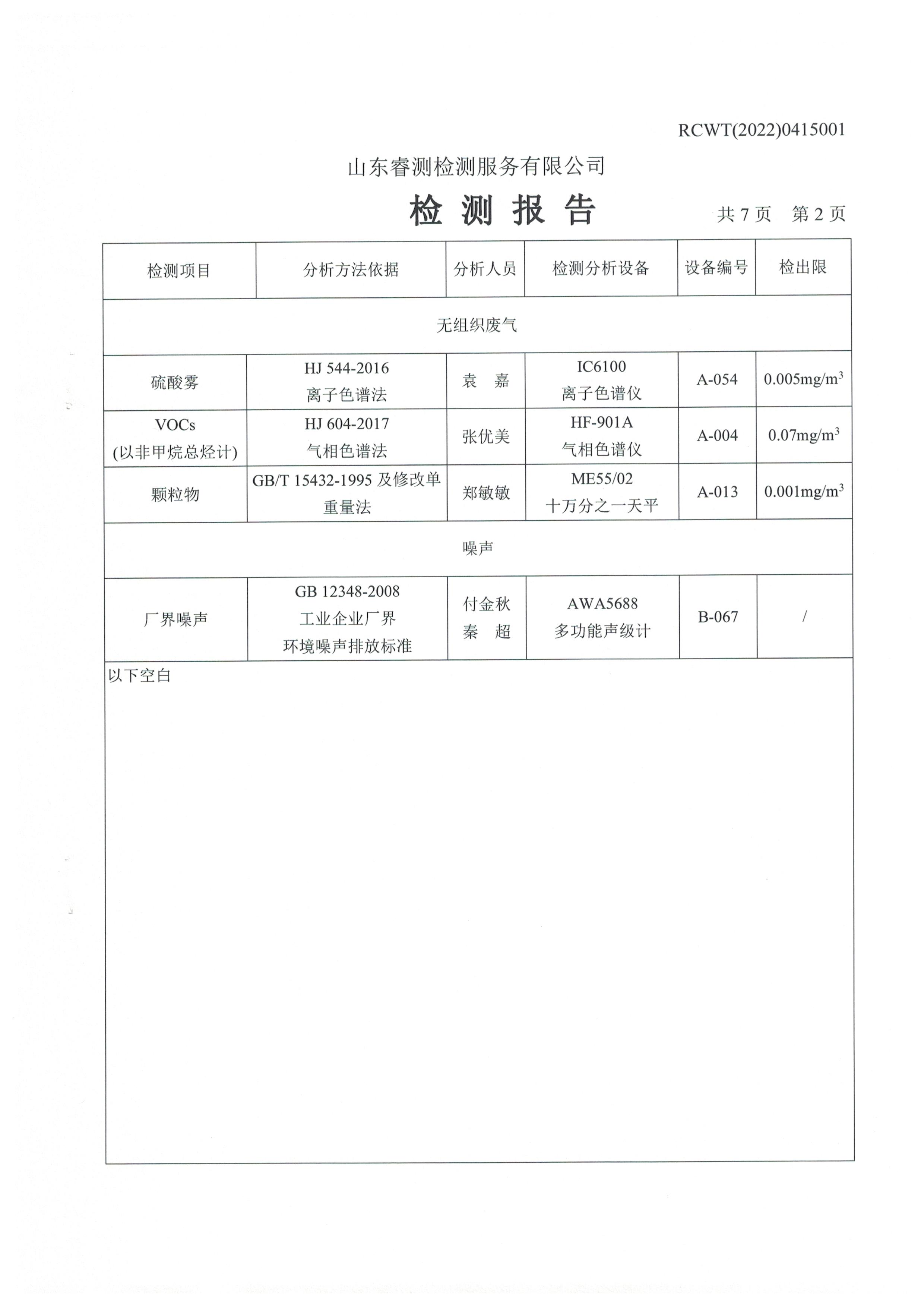 2022年第二季度(4月份)自行檢測(cè)報(bào)告